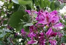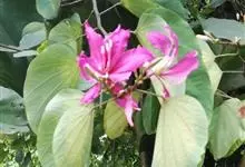 羊蹄甲,别名紫花羊蹄甲、玲甲花,是豆科羊蹄甲属的一种常绿乔木或灌木。树冠开展,枝桠低垂;树皮灰色至暗褐色,近光滑。枝幼时微被灰色短柔毛,后毛脱落;叶硬纸质,近圆形,基部浅心形,…全部>>
