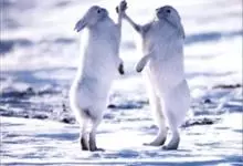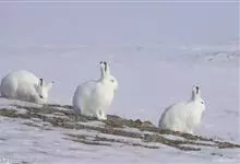 北极兔, 是兔科、兔属的哺乳动物。北极兔体型巨大,头比一般的兔子大且长,耳朵较小,腿长,四肢非常有力灵活,夏季身体背面浅灰色,冬季身体背面白色。北极兔属于群居动物,鼻子、耳朵灵敏,不羞怯胆小,易于驯服,…全部>>