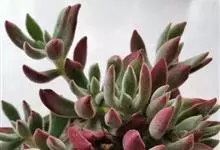 紫珍珠是景天科石莲花属的多年生肉质草本植物。植株中小型;叶片肉质,匙形,呈莲座状紧密排列;叶片粉紫色,叶缘呈粉白色,光照充足时颜色亮丽,不足时叶色会呈现深绿色或灰绿色,叶面光滑,被轻微白粉,…全部>>