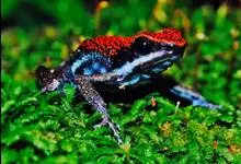 箭毒蛙,是无尾目箭毒蛙科箭毒蛙属动物。箭毒蛙体形较小,一般长1-6厘米,身上的颜色多为黑色与红色、黄色、橙色、绿色等;皮肤内有粘液分泌腺,能使皮肤随时保持湿润;四肢布满鳞纹;足间无蹼。…全部>>