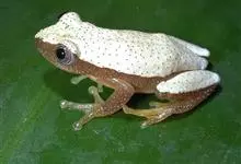 树蛙是树蛙科两栖动物的统称。树蛙体中等或大,一般雄蛙吻端斜尖,雌蛙吻端高钝;舌后端缺刻深,梨骨齿发达,鼓膜明显,指间有蹼或蹼发达,趾间近全满蹼,外侧跖较发达;鼻骨小、蝶筛骨显露,额顶宽或宽短,…全部>>