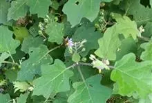 刺天茄,是茄科茄属的多年生草本植物。茎直立,枝条有刺;叶片大,互生,卵形或椭圆形,有长柄,叶面有短柔毛;花单生于枝顶,外面密被星状绒毛及细直刺,果被星状毛及直刺,浆果球形,光亮,…全部>>