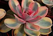 紫珍珠是景天科石莲花属的多年生肉质草本植物。植株中小型;叶片肉质,匙形,呈莲座状紧密排列;叶片粉紫色,叶缘呈粉白色,光照充足时颜色亮丽,不足时叶色会呈现深绿色或灰绿色,叶面光滑,被轻微白粉,…全部>>