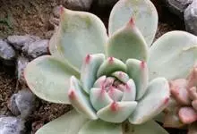 芙蓉雪莲是景天科拟石莲花属的植物。由于叶片表面覆盖着一层厚霜粉,通常呈现出白色;日照增多,温差增大后叶缘、叶尖会呈现出粉红色或橙红色。…全部>>
