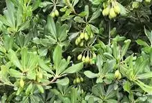 海桐 W. T. Aiton)是海桐科海桐属常绿灌木或小乔木;嫩枝被褐色柔毛;叶聚生于枝顶,浓密且有光泽;伞形花序顶生,花为白色,气味芳香;蒴果呈球形,三瓣裂开,红色;花期3-5月,果熟期9-10月。…全部>>