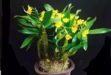 束花石斛是兰科石斛属植物。茎粗厚,肉质,下垂或弯垂,圆柱形,不分枝,具多节。叶二列,互生于整个茎上,纸质,长圆状披针形。伞状花序近无花序柄,每2-6花为一束,侧生于具叶的茎上部;花黄色,…全部>>