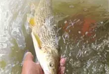 黄姑鱼是鲈形目石首鱼科黄姑鱼属鱼类。黄姑鱼身体延长而侧扁,耳石尖圆形,腹面蝌蚪形印迹的尾区为形凹沟;身体背部灰黄色;腹部银白色,带黄色;体被栉鳞,体侧鳞片多有褐斑,有许多细的斜纹;吻端、眼下部被圆鳞,…全部>>