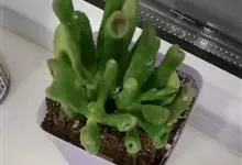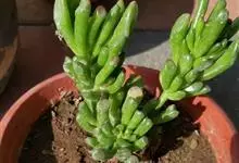 筒叶花月,是景天科青锁龙属的多年生草本植物。植株多分株,灌木状,茎较粗壮,圆柱形,表皮灰褐色;叶片肉质,互生,呈圆筒状,簇生于茎或分枝顶端,叶端呈斜截形,截面为椭圆形;花呈星状,淡白色;花期秋季。…全部>>
