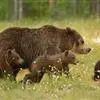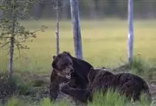 棕熊是熊科熊属哺乳动物。体形健硕,肩背隆起,身后长有一条短尾。毛色多为棕褐色或棕黄色;老年呈银灰色;幼年为棕黑色。野生条件下寿命为20—30年。棕熊分布广泛,主要分布在欧亚大陆和北美,…全部>>
