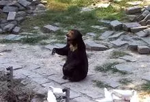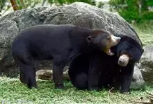 马来熊,是食肉目熊科马来熊属哺乳动物。体胖颈短,眼睛和耳朵小;头部短圆;全身乌黑光滑;鼻唇周为棕黄色,裸露无毛;眼圈为灰褐色,趾基部连有短蹼;胸斑中央有一个毛旋,颈部周围的一圈皮肤极松弛,…全部>>