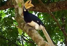 马来犀鸟是一种犀鸟。因嘴形粗厚而直,嘴上通常具盔突,形似犀牛角而得名。并趾型,外趾和中趾基部有三分之二互相并合,中趾与内趾基部也有些并合,善于攀援。每年入春后约5~6月由群居转为成对,选择高大树干距…全部>>