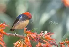 红胸啄花鸟:体重5-10克,体长60-92毫米。体形纤小。雄鸟上体呈辉亮的金属绿色;下体棕黄,胸部具一朱红色块斑,极易与其他啄花鸟区别。雌鸟上体呈橄榄绿,下体棕黄色。虹膜褐色,嘴褐黑色或角灰色,…全部>>