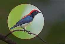 朱背啄花鸟:体重6-8克,体长81-97毫米。是一种小型的黑色及红色啄花鸟。雄鸟顶冠、背及腰猩红色,两翼、头侧及尾黑,两胁灰,下体余部白色。雌鸟上体橄榄色,腰及尾上覆羽猩红,尾黑。亚成鸟清灰色,嘴橘黄,…全部>>