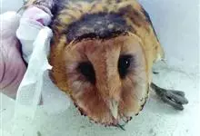 仓鸮,是鸮形目草鸮科草鸮属鸟类,其头大而圆,面盘白色,有时沾棕,眼先棕色,眼周浅棕色;面盘四周围有一棕色或橙黄色领环,颈侧及肩浅棕黄色,微具黑褐色及白色斑点;其余上体浅灰色,羽缘棕黄色,…全部>>