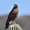 靴隼雕:是鸟纲、鹰科的中型鹰类。全长约40-53厘米,头、颈白色沾棕,纵贯以暗褐色轴纹,眉纹黑色。上体深褐色,肩羽略淡。初级飞羽黑色,翅下覆羽白色,尾灰褐色,先端色较浅,有4-5条不明显的深色横斑。…全部>>