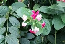 使君子 Jongkind)是使君子科、使君子属攀援灌木,叶对生,椭圆形,两面均被灰白色柔毛。穗状花序,倒挂下垂。花期夏秋。果有五棱,熟时黑色,种子白色。分布于印度、缅甸、菲律宾和中国。喜温润,深根性,…全部>>