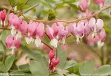 荷包牡丹 Fukuhara),是罂粟科荷包牡丹属的多年生草本植物,株高30-60厘米,具肉质根状茎;茎直立呈圆柱形;叶二回三出全裂,状似牡丹叶;总状花序顶生,基部为心形,花瓣紫红色至粉红色,稀白色,…全部>>