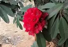 问客杜鹃:灌木,高1-3米。幼枝细长,密被腺体状鳞片。叶革质,椭圆形,卵状披针形或长圆形,上面被鳞片,幼叶中脉被毛或无毛,下面灰绿色。花序顶生,3-4花,伞形着生或短总状;花萼长环状或波状浅裂;花冠…全部>>