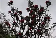 马缨杜鹃是杜鹃花科杜鹃花属的常绿灌木或小乔木,高可达1-7米。树皮淡灰褐色;幼枝被白色绒毛;叶革质,长圆状披针形;顶生伞形花序,总轴密被红棕色绒毛,花梗密被淡褐色绒毛,苞片倒卵形有短尖头,…全部>>