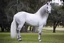 阿拉伯马是奇蹄目马科马属哺乳动物。体格不算大,体质干燥结实。头形轻俊干燥,前额宽广,向鼻端逐渐变细,面部正直或稍凹;耳短小、竖立,眼大有神,两眼距离宽,鼻孔大,下颚深而广;颈长而形美;肩、系较斜,…全部>>