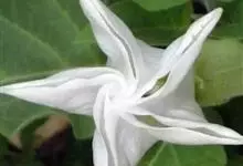 曼陀罗,茄科曼陀罗属一年生大型草本植物,全株光滑。有臭气;叶呈广卯形,边缘具不规则波状浅齿裂;花单生于枝杖间或叶腋,直立,有短梗;花萼是筒状裂片三角形,颜色为白色或淡紫色;果实为蒴果卵状,…全部>>