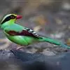 蓝绿鹊:中型鸟类,共有5个亚种。体长36-38厘米。尾长,嘴、脚红色。通体羽色主要为草绿色,宽阔的黑色贯眼纹向后延伸到后颈,在绿色的头侧极为醒目。两翅栗红色,内侧飞羽具黑色次端斑和白色尖端。尾绿色,…全部>>