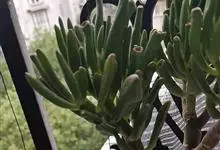 筒叶花月,是景天科青锁龙属的多年生草本植物。植株多分株,灌木状,茎较粗壮,圆柱形,表皮灰褐色;叶片肉质,互生,呈圆筒状,簇生于茎或分枝顶端,叶端呈斜截形,截面为椭圆形;花呈星状,淡白色;花期秋季。…全部>>