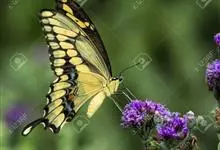 金凤蝶,是鳞翅目凤蝶科凤蝶属动物。金凤蝶为中型凤蝶,翅展70-84毫米,翅背面底色黑褐色,翅脉黑色,翅室具黄斑;前翅背面基部呈暗黄色,亚外缘为黑色,内具一列小黄斑;后翅背面亚外缘区具黑宽边,…全部>>