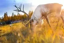 驯鹿,又名角鹿。是鹿科驯鹿属下的唯一一种动物。身长约200厘米,肩高100-120厘米。雌雄皆有角,角的分枝繁复是其外观上的重要特征。长角分枝繁复,有时超过30叉,蹄子宽大,悬蹄发达,尾巴极短。…全部>>