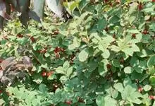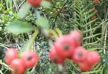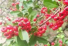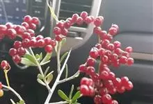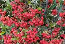火棘 H. L. Li)是蔷薇科火棘属常绿灌木,老枝呈暗褐色;叶片呈倒卵形,边缘有钝锯齿,齿尖向内弯,两面皆无毛;叶柄短,无毛或嫩时有柔毛;花序是复伞房状,花瓣呈白色近圆形;果球近圆形,…全部>>
