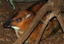 豚鹿也叫芦蒿鹿,体形中等,但较为粗壮,四肢较短,显得矮胖,臀部钝圆且较低,姿态象猪,因而得名。雄性豚鹿长着细长的三叉角,全身淡褐色,生活在沿河两岸的湿地。昼伏夜出,既善穿越灌草丛,也能跳跃障碍。多单…全部>>