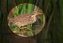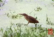 紫背苇鳽是鹭科、苇鳽属动物,为涉禽,体长约33厘米。头顶黑色,后头至尾上覆羽暗栗褐色;翅上覆羽橄榄黄色;下体浅棕黄色。多生活于水库和山脚边的稻田、芦苇丛、滩涂及沼泽草地,在西藏见于海拔2300米的农田,…全部>>