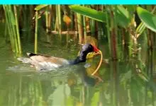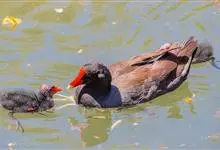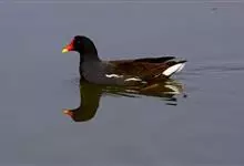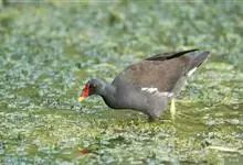 黑水鸡:是鹤形目、秧鸡科的鸟类,共有12个亚种。中型涉禽,体长24-35厘米。嘴长度适中,鼻孔狭长;头具额甲,后缘圆钝;嘴和额甲色彩鲜艳。翅圆形,第2枚初级飞羽最长,或第2枚和第3枚初级飞羽等长,…全部>>
