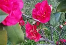 滇山茶:灌木至小乔木,有时高达15米,嫩枝无毛。叶阔椭圆形,上面干后深绿色,发亮,下面深褐色,无毛,侧脉6-7对,边缘有细锯齿。花顶生,红色,直径10厘米,无柄;苞片及萼片10-11片,花瓣红色,…全部>>