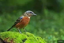 栗腹矶鸫是鸫科、矶鸫属小型鸟类,体长20-25厘米。雄鸟上体呈辉亮的钴蓝色,两翅黑褐色,喉蓝黑色,其余下体栗红色。雌鸟上体橄榄褐色,背具黑色鳞状斑,下体棕白色密杂以黑褐色横斑,黑白相衬,极为醒目,…全部>>