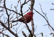 酒红朱雀小型鸟类,体长13~15厘米。雄鸟通体深红色,头部深朱红或棕红色,下背和腰玫瑰红色,眉纹粉红色而具丝绢光泽。两翅和尾黑褐或灰褐色、具暗红色狭缘,内侧两枚三级飞羽具淡粉红色先端。…全部>>