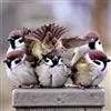 家麻雀:共有13个亚种。是小型鸟类,体长14-16厘米。背栗红色具黑色纵纹,两侧具皮黄色纵纹;颏、喉和上胸黑色,脸颊白色,其余下体白色,翅上具白色带斑。雄鸟与树麻雀的区别在顶冠及尾上覆羽灰色,耳无黑…全部>>