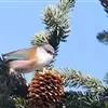 凤头雀莺:小型鸟类。体长9-10厘米,雄鸟呈毛茸茸的紫色和绛紫色,顶冠淡紫灰色,额及凤头白色,尾全蓝。雌鸟喉及上胸白,至臀部渐变成淡紫色,耳羽灰,…全部>>