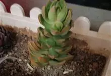 筒叶花月,是景天科青锁龙属的多年生草本植物。植株多分株,灌木状,茎较粗壮,圆柱形,表皮灰褐色;叶片肉质,互生,呈圆筒状,簇生于茎或分枝顶端,叶端呈斜截形,截面为椭圆形;花呈星状,淡白色;花期秋季。…全部>>
