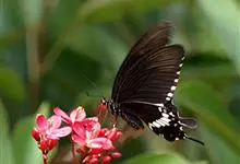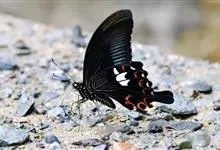 玉斑凤蝶Papilio helenus 别名白纹凤蝶,是凤蝶科凤蝶属美凤蝶亚属大型种类。雌雄同型;体翅皆黑色,后翅正面中室外有3个并列的白色斑,亚外缘有1列模糊的新月形红色斑,…全部>>