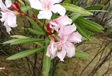 白花夹竹桃是夹竹桃科、夹竹桃属植物夹竹桃的栽培品种。常绿直立大灌木,枝条灰绿色;嫩枝条具稜,被微毛,老时毛脱落。叶3-4枚轮生,下枝为对生,叶面深绿,叶背浅绿色;侧脉纤细平行与中脉成直角;叶柄扁平,…全部>>