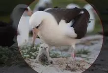 黑脚信天翁为鹱形目信天翁科下的一种大型海鸟, 单型种,无亚种分化。体长79-83厘米。嘴黑色,嘴基和眼下方灰白色,其余全身黑褐色。个别尾上覆羽和尾下覆羽白色,脚黑色,能与短尾信天翁区别。 全部>>