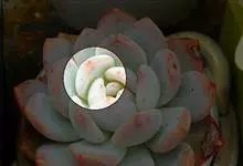 芙蓉雪莲是景天科拟石莲花属的植物。由于叶片表面覆盖着一层厚霜粉,通常呈现出白色;日照增多,温差增大后叶缘、叶尖会呈现出粉红色或橙红色。…全部>>