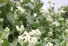 牛角瓜 W. T. Aiton)是夹竹桃科、牛角瓜属直立灌木,高达3米,全株具乳汁;茎黄白色,枝粗壮,幼枝部分被灰白色绒毛。叶倒卵状长圆形或椭圆状长圆形,长8-20厘米,宽3.5-9.5厘米。…全部>>