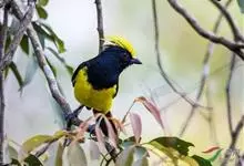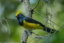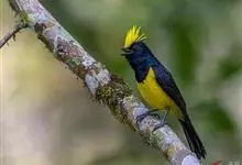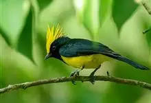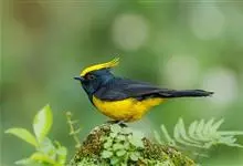 冕雀:共有4个亚种。体长20-21厘米,体重34-49克。具蓬松的黄色长型冠羽。雌鸟似雄鸟,但喉及胸深橄榄黄色,上体沾橄榄色。不会被误认的体大的黄色及黑色山雀。混群栖于原始林及次生林的林冠层,…全部>>