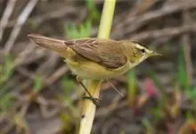 东方大苇莺是莺科苇莺属的一种动物,体长18-19厘米,体重22-29克。体型略大的褐色苇莺。具显著的皮黄色眉纹。上体呈橄榄褐色。下体乳黄色。第1枚初级飞羽长度不超过初级覆羽。虹膜褐色;上嘴褐色,…全部>>