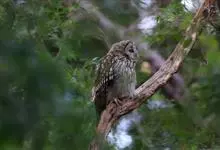 灰林鸮是鸱鸮科、林鸮属鸟类。体长约40厘米;头大而圆,没有耳羽,面盘明显,橙棕色或黑褐色;上体暗灰色,呈棕、褐斑杂状;飞羽暗褐,外侧翅上夏羽的外翈棕白色,在翅上形成显著的棕白色翅斑;下体白或皮黄色,…全部>>