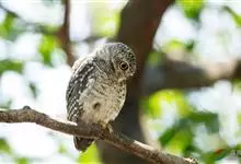 鬼鸮是鸟纲鸱鸮科的鸟类, 全长23-26厘米。共有6个亚种。雌雄羽色相同。额、头顶及枕部褐色,有白色椭圆斑。面盘白色外侧羽缘褐色。胸以下为白色,有褐色纵斑。翅褐色。…全部>>