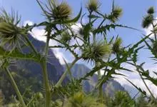 魁蓟菊科蓟属植物,多年生草本,高达1米,茎枝被长毛,基部和下部茎生叶长椭圆形或倒披针状长椭圆形,羽状深裂,侧裂片8-12对,头状花序排成伞房花序;总苞钟状,径达4厘米,总苞片8层,瘦果灰黑色,…全部>>