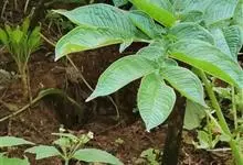 魔芋是天南星科、魔芋属植物,块茎扁球形,直径7.5~25厘米,顶部中央多少下凹,暗红褐色。叶柄长45~150厘米,基部粗3~5厘米。花序柄长50~70厘米,粗1.5~2厘米,色泽同叶柄。…全部>>